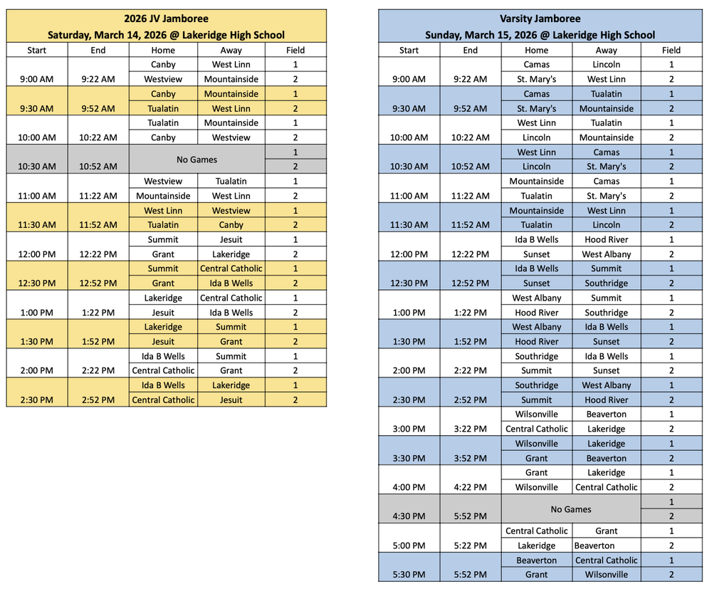 JV & Varsity Jamboree Schedules - March 14 & 15 @ Lakeridge High School